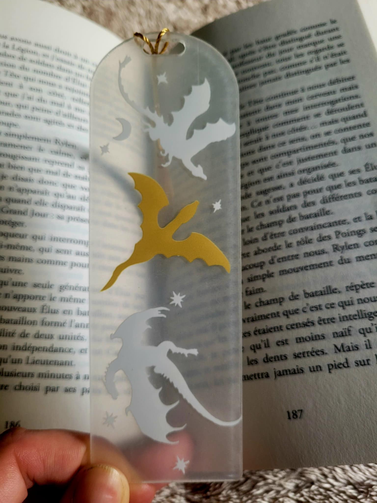 Décoré de dragons légendaires, ce marque-page veille sur tes quêtes littéraires.
